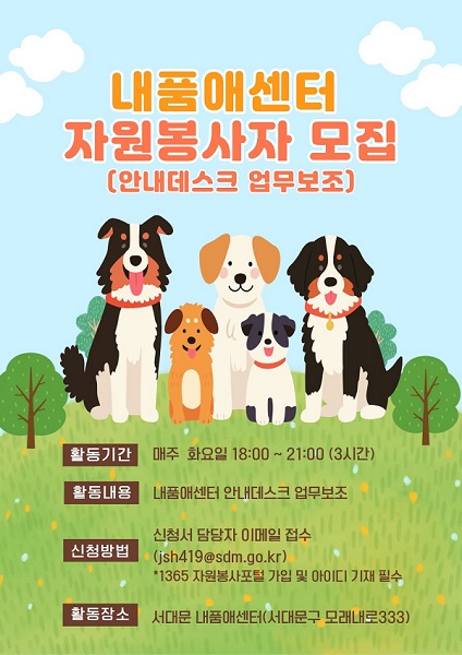 내품애센터 자원봉사자(안내데스크 업무 보조) 모집 2025.10.02
